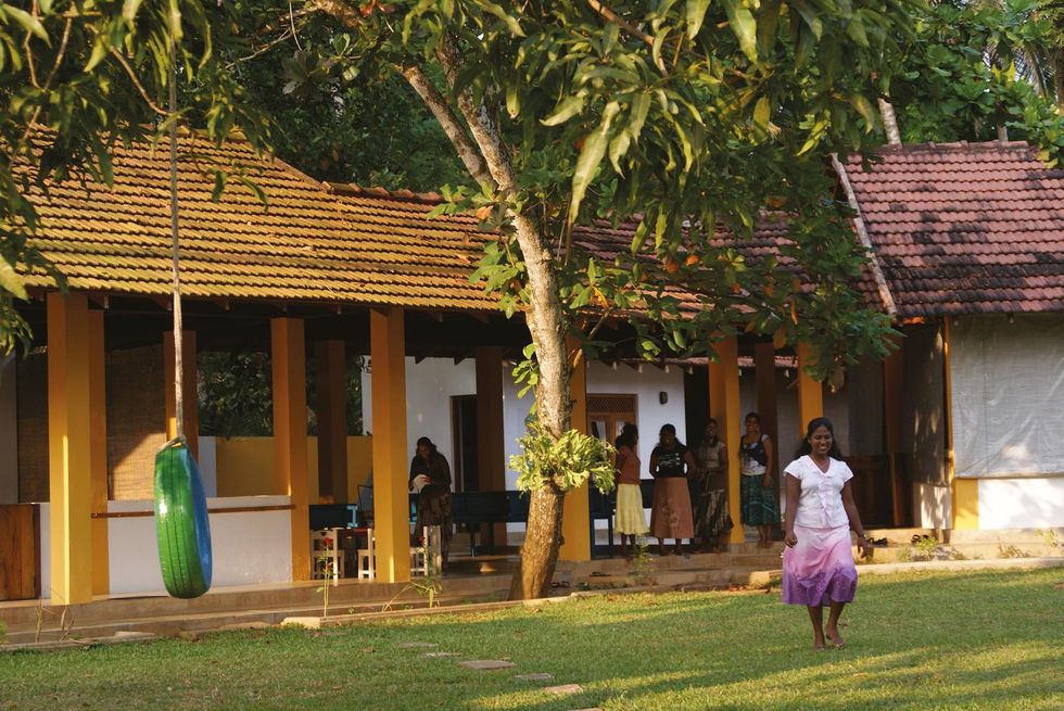 Bamses skola på Sri Lanka Ett klassrum heter Lille Skutt, ett annat Skalman och i träden växer det bananer.