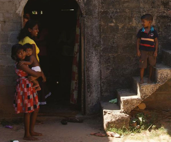 Saliya är 5 år och tycker om att rita. Här står han på trappan utanför sitt hus. Saliyas pappa är sällan hemma eftersom arbetar i armén. Hans mamma jobbar som hushållerska hemma hos andra när hon inte sköter om Saliya och hans syskon. En av bilderna är tagen hemma i Saliyas kök. Barnen som går på Saliyas skola har det mycket fattigt hemma. Saliyas hus ligger hemma på bakgården till huset där läraren Manori bor. På sista bilden står hon och pratar med Saliya och hans systrar.