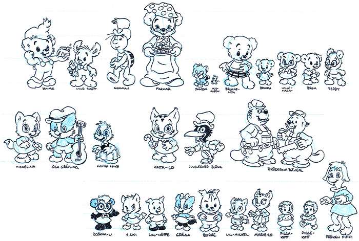 Här är några av alla de figurer som var med i ”Bamse och Tjuvstaden”. De flesta ser ut som de brukar göra, men vissa ser lite annorlunda ut i filmen jämfört med hur de ser ut i tidningen. Kan du se vilka?