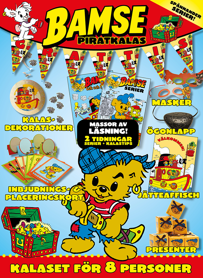 Bamse piratkalas! 2 aug, 2017 Bamse piratkalas finns nu i butik. Innehåller allt du behöver till ett kul kalas och spännande läsning.