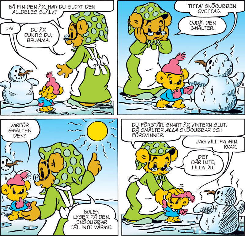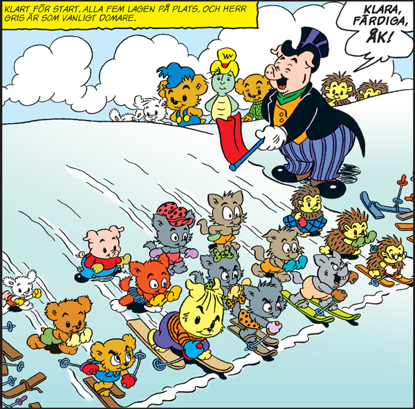 Du får också läsa berättelserna Bamse och klocktjuvarna, Kurre och Kurra flyttar, Den hemliga målvakten, Ungarnas skidstafett och Brummas snögubbe.