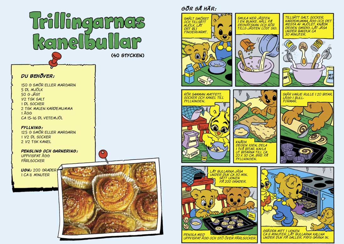 Kanelbullens dag! 4 okt, 2019 Idag är det Kanelbullens dag! Här finns recept att ladda ner på trillingarnas kanelbullar från Bamses bakbok. Ladda hem trillingarnas recept på kanelbullar här (.pdf)