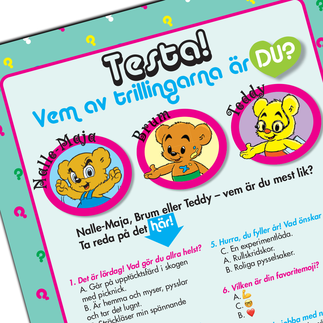 I Nalle-Maja magasinet hittar du såklart serier om Nalle-Maja, hennes familj och hennes kompisar. Men du hittar även roliga reportage, smarta tips, frågequiz, pyssel och Nalle-Majas dagbok.