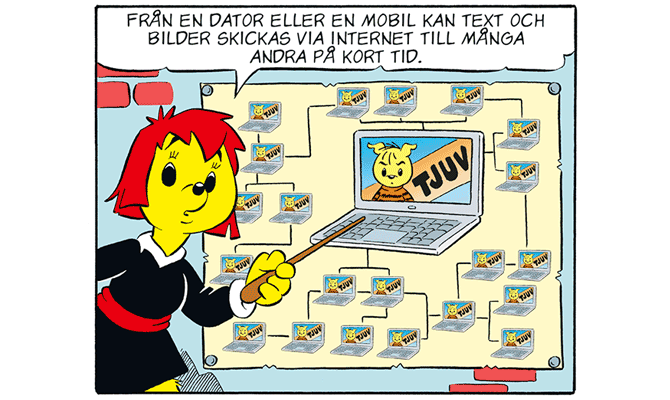 I samma tidning kan man också testa hur källkritisk man är, få internettips av Elza och läsa serien “Är Bamse en buse?” som handlar om vad som kan hända när en nyhetsredaktion börjar fara med osanning.