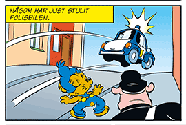 Någon har tagit Pontus Kasks polisbil. Bamse och Nina bestämmer sig för att hjälpa till och leta reda på tjuven.