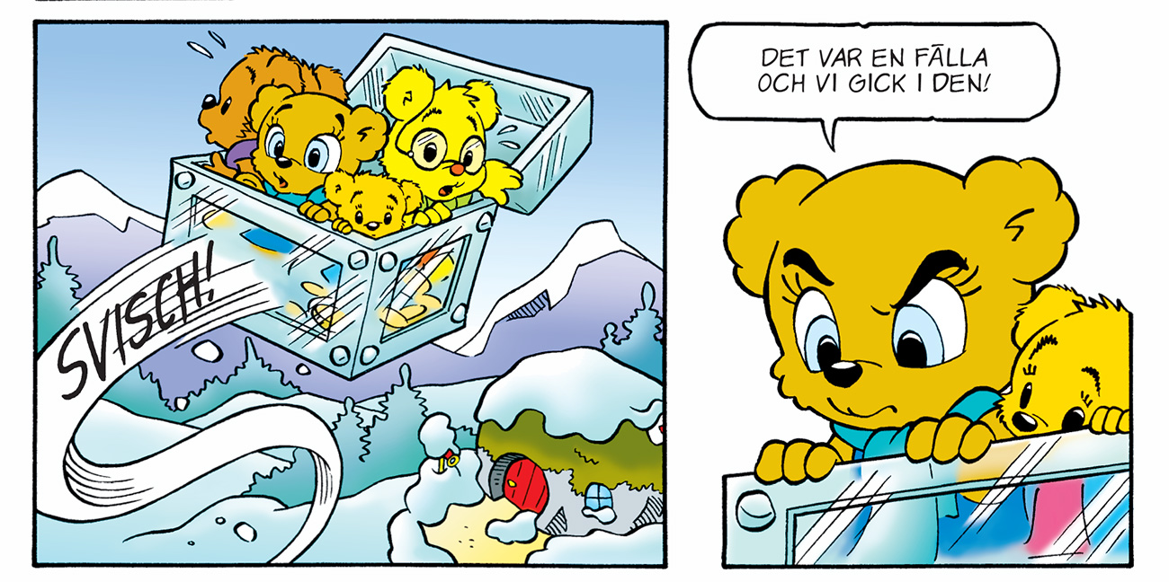 Bamses barn är ute och leker i snön när de får syn på en kista gjord av is. På något sätt hamnar barnen i kistan som flyger iväg med dem, men vart, och varför?
