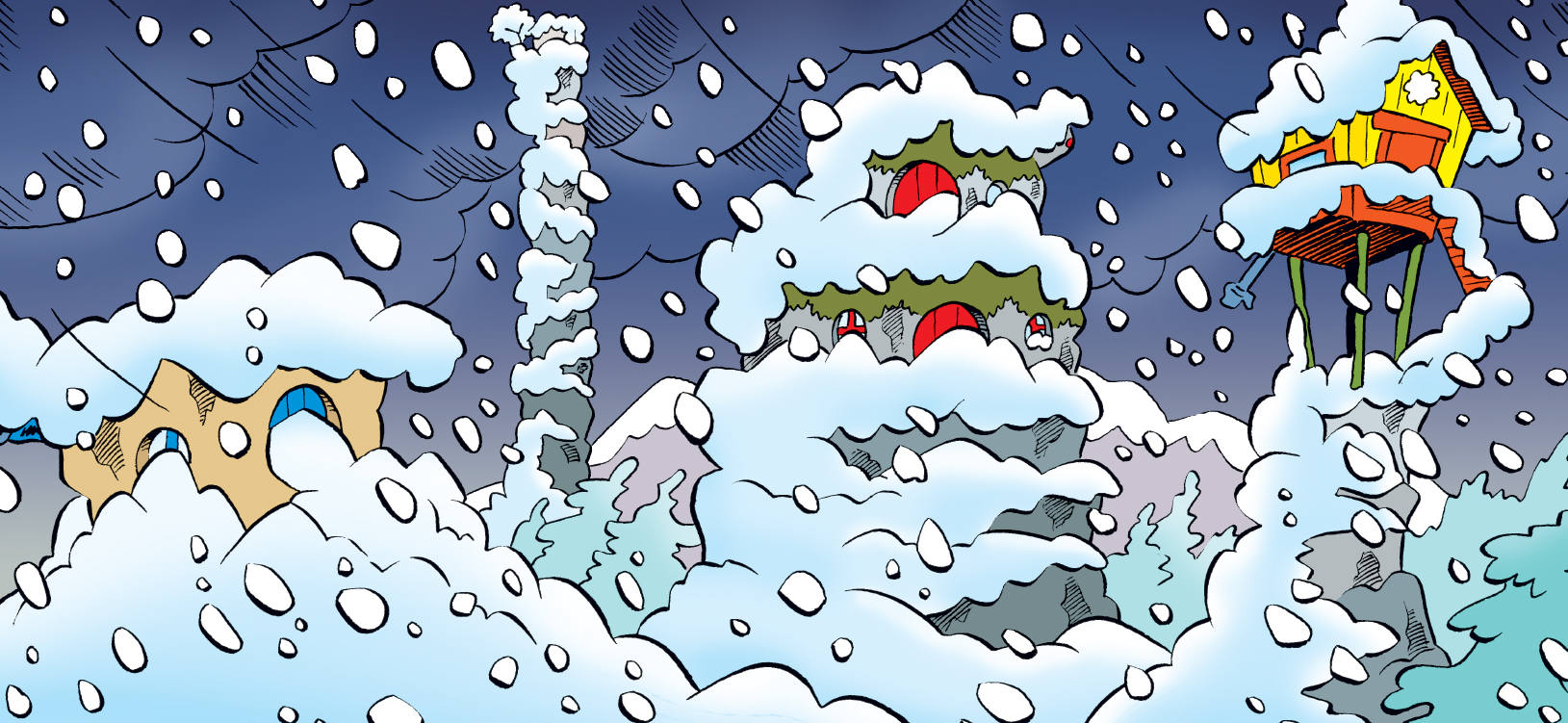 Det har varit ett hemskt snöoväder och många är insnöade. Bamse ligger sjuk så han kan inte hjälpa till med snöröjningen.