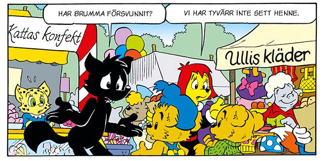 Om det är mycket folk på en plats kan det vara svårt att hålla reda på varandra. En dag när Bamse, Brummelisa och Brumma besöker marknaden kommer Brumma bort.