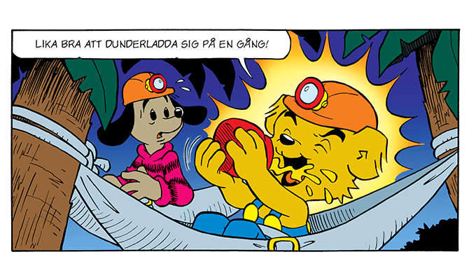 I detta nummer får du en extra tidning om Bamses vän Iller-Ville, eller Furry Ferret som han heter på engelska. Historien finns både på svenska och engelska, så att du får möjlighet att träna.