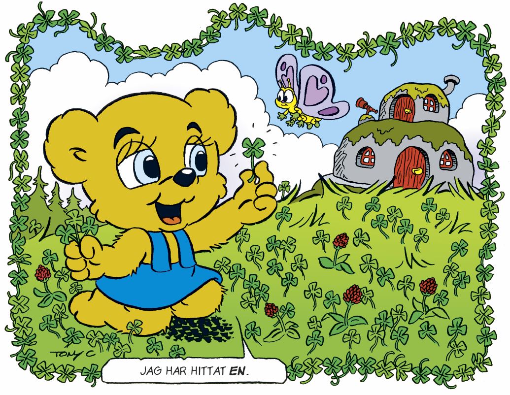 Vinn Bamse 4 i rad! Hjälp Nalle-Maja räkna hur många fyrklöver som växer på ängen och var med och tävla.