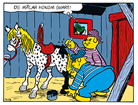 Bamse har lovat vargen att få vara med och sköta Billy Boy. Men två hästtjuvar är i farten. Som tur är får Ola Grävling syn på vad som sker.