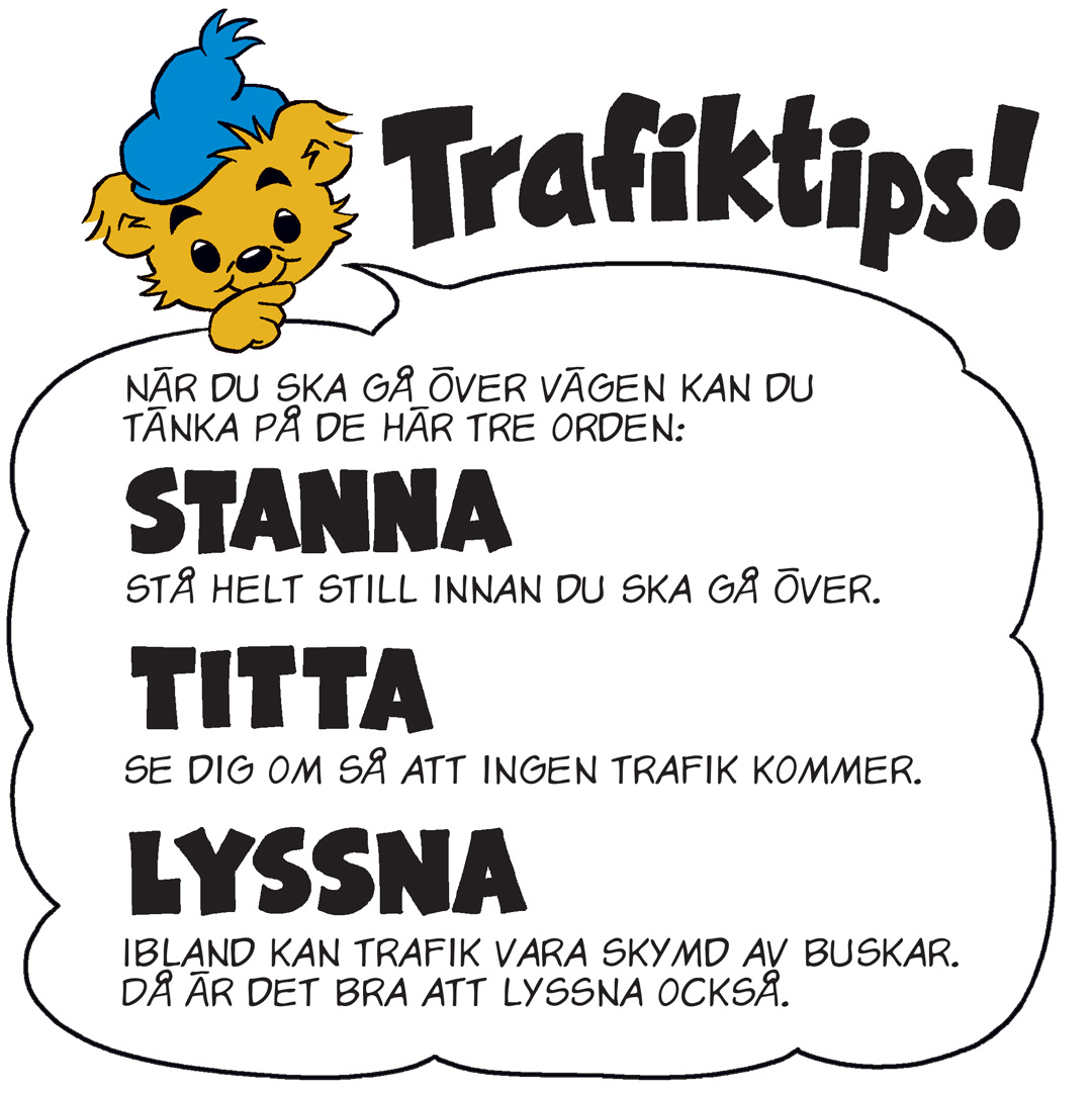 Alla som rör sig i trafiken är trafikanter. Kanske går vi, kanske cyklar vi, kanske kör vi bil. I Bamses trafikskola i Bamse nr 4/5 kan du läsa om saker som är bra att tänka på i trafiken.