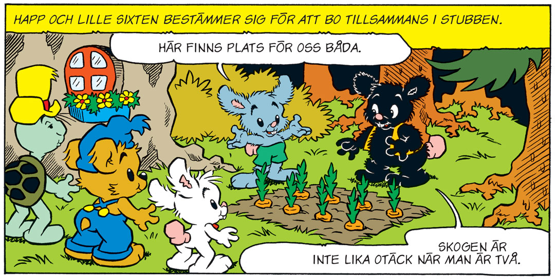 I berättelsen “Happ blir husvill” får du reda på hur det gick till när Lille Skutts bror Happ blev sambo med Lille Sixten.