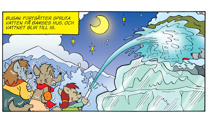 I aktuella Bamse nr 2 ryktas det om att Bamse har slut på dunder-honung. Detta är Vargkusinerna inte sena med att vända till sin fördel och en natt försöker de frysa Bamsefamiljen inne. Hur ska det gå?