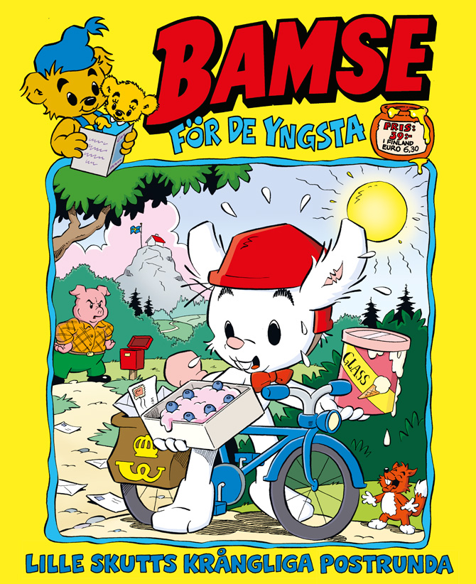 I detta nummer kan ni läsa berättelsen ”Lille Skutts krångliga postrunda”. Lille Skutt arbetar som brevbärare. I dag ska han lämna ett brev till Kanina Tussetoss. När han gjort det ber hon honom om en liten tjänst. Självklart vill Lille Skutt hjälpa till! Men oj, hon vill visst att han ska cykla med en tårta uppför berget till hennes bror Hoppus. Kommer Lille Skutt att klara detta?
