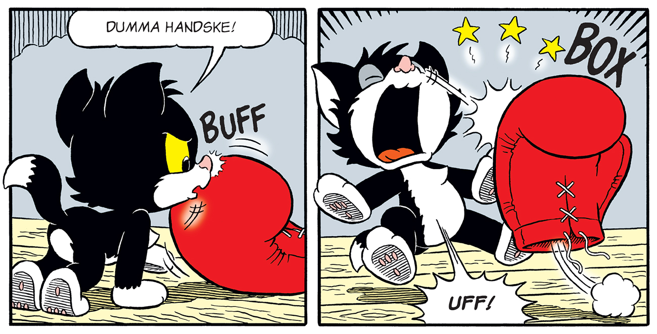 Farmor är uppe på vinden och rotar i en gammal låda. Hon hittar bland annat ett par gamla boxningshandskar som Janson blir nyfiken på. De verkar leva ett eget liv … Eller?