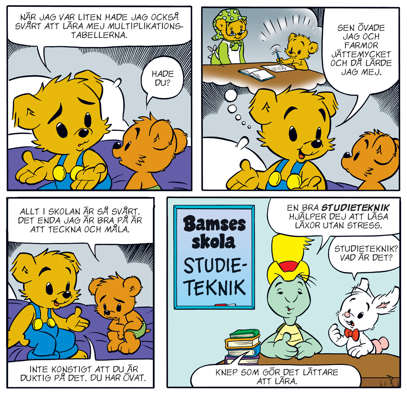 Det kommer att handla om studieteknik i Bamse nr 1 nästa år (i butik den 13 januari). Gratis tillhörande lärarhandledning finns då även att ladda ner på serieriundervisningen.se